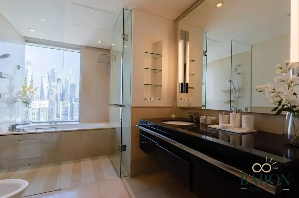The Sophisticated Suite im Dubai Marina bietet ein Familienzimmer sowie eine gemütliche Bar und ein Restaurant vor Ort, das auch als Terrasse genutzt werden kann. Gäste können sich nach dem Frühstück am Morgen direkt erfrischen, zwei Schwimmbecken stehen zur Verfügung oder es gibt kostenlose Parkplätze für Besucher. In unmittelbarer Nähe liegt der Schwarze Kaffee nur einen Gehminute entfernt, während das Nova Restaurant & Lounge mit einem kurzen Autofahrten von acht Minuten erreichbar ist. Die Lage nahe der Marina ermöglicht zudem schnellen Zugang zum Marina Beach in ebenfalls acht Fahrminuten. Für Reisende mit Flugverbindungen ist der Al Maktoum Internationale Flughafen in 26 Minuten Fahrtzeit zu erreichen, was einer Distanz von rund 26 Kilometern entspricht. Zudem befindet sich die Dubai Marina Mall Tram Station sieben Minuten mit dem Auto entfernt.